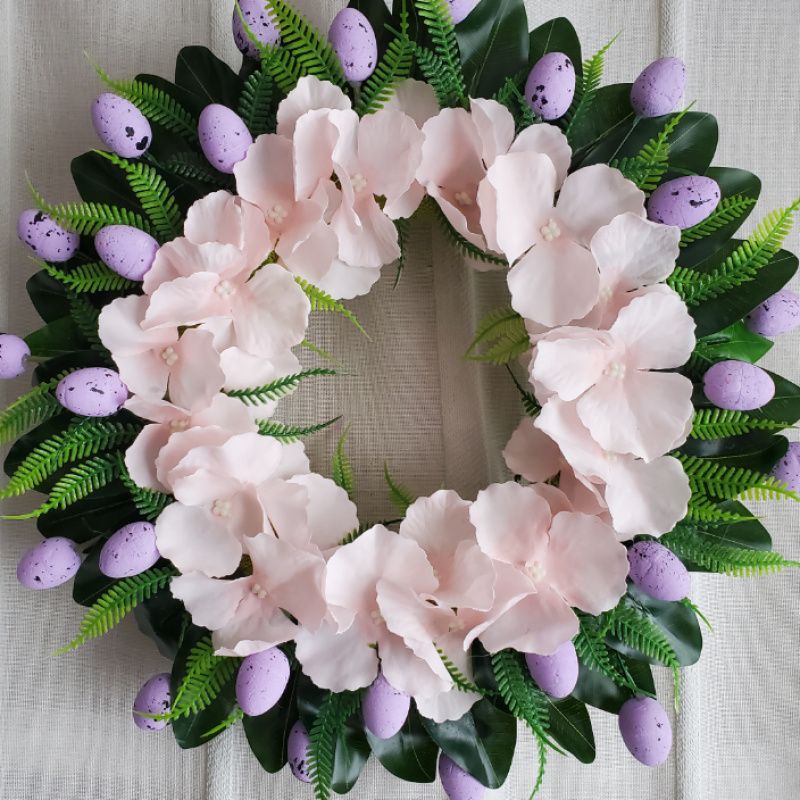 Великодній вінок з рожевими весняними квітами