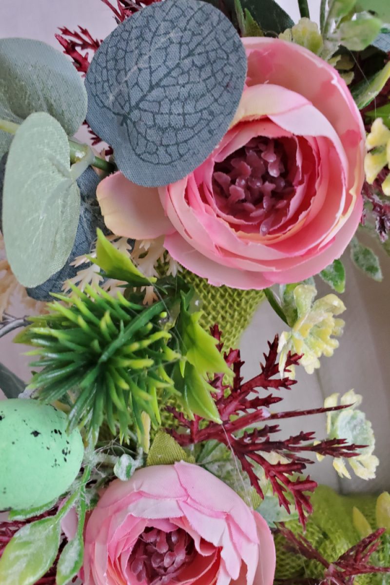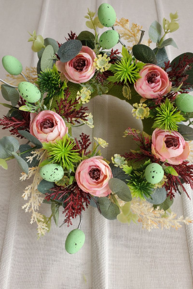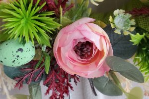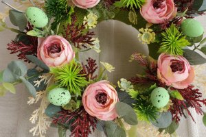 Великдень прекрасне та дуже світле свято. Прикрашати будинок до нього можна на свій розсуд і смак, можна змішувати різні стилі та напрямки. Головне, щоб у будинку обов'язково були присутні атрибути Свята — великодні вінки, композиції з весняними квітами, зеленню, великоднє дерево, прикрашене фарбованими яйцями, свічник зі свічкою. Це свято завжди святкується навесні, тому це символ воскресіння та нового життя! Пасхальна композиція з весняними квітами зеленню (символ весни, відродження), колосками (добробут у будинку), яйцями (символ Великодня), підставка з дерева (довголіття та міцне здоров'я) – прикрасить ваш будинок і подарує надію на все добре.