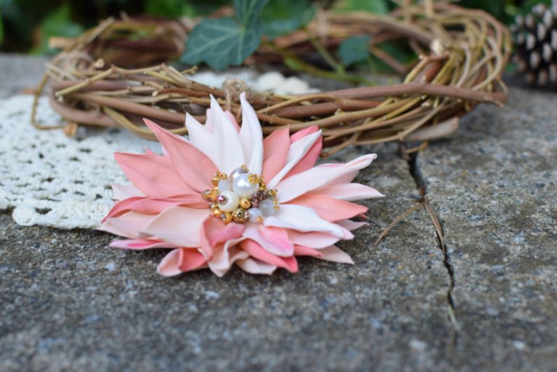 Завдяки універсальному кріпленню квітку можна зачепити і у волосся і як брошку .