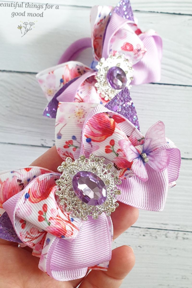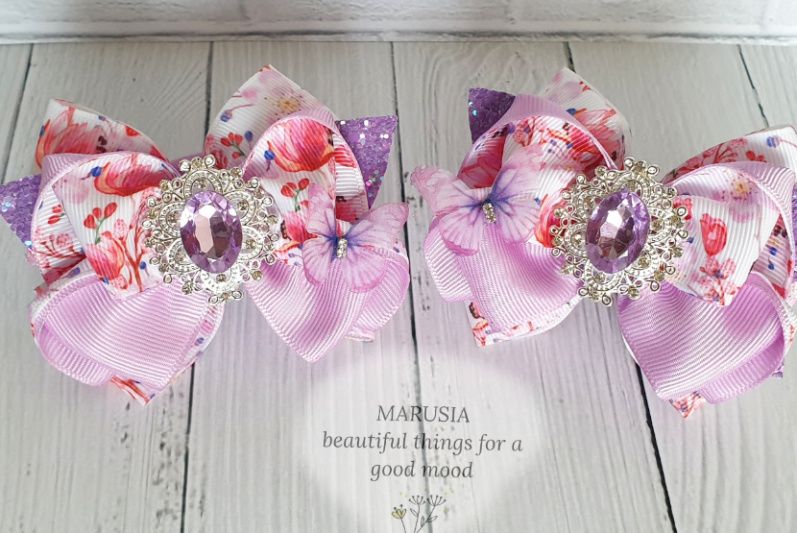 Бантики на гумках з стрічки люкс-класу і блискучої шкіри зі стразового серединкою