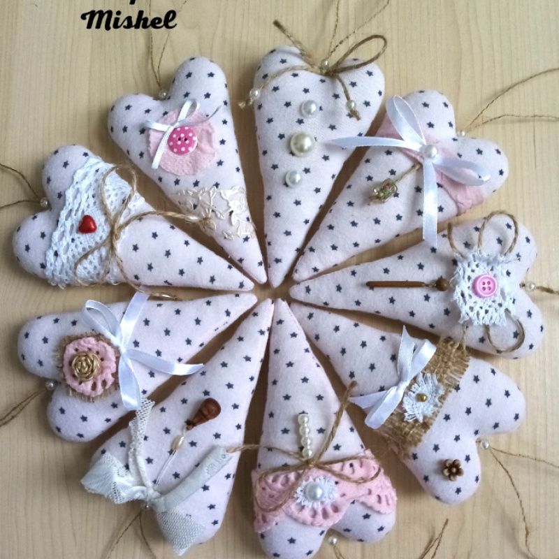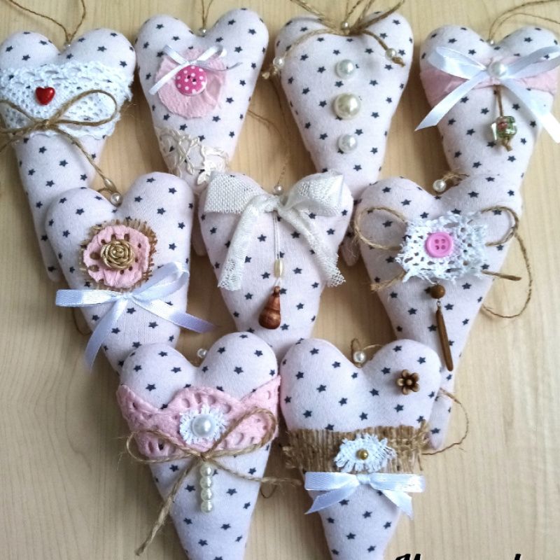 Текстильні серця підвіски, Тільда. На кожному різний декор. Тканина бавовна, синтепон. Набір 9шт -450 грн. Висота - 13 см. Усі йдуть на мотузочках. Ексклюзивний подарунок близькій людині, декор для дому до Дня Усіх закоханих або оригінальний реквізит для створення атмосферних фото.