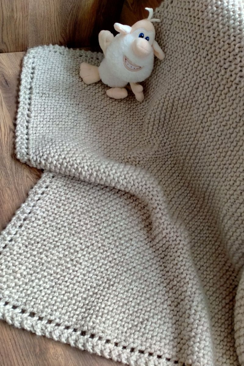Дитячий теплий в'язаний плед з товстої якісної пряжі. До складу входить шерсть альпаки, овеча шерсть і акрил. Шерсть альпаки в 7 разів тепліше овечої вовни, не викликає алергії. Готовий виріб виглядає чудово і добротно. Шерсть слабо електризується, тому менше забруднюється. У виробах з вовни людина ніколи не потіє (шерсть гігроскопічна і проводить повітря). Шерсть має хорошу енергетику, благотворно впливає і заспокоює. Малюк буде відчувати себе тепло, затишно і комфортно. Розмір 89см * 85см, достатній для використання до 6-7мес. Підійде і в коляску, і в ліжечко, як покривало, і на виписку. Необхідна річ для будь-якого новонародженої дитини. Колір універсальний -подойдёт як для хлопчика, так і для дівчинки.