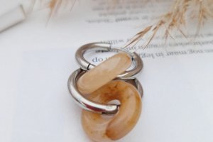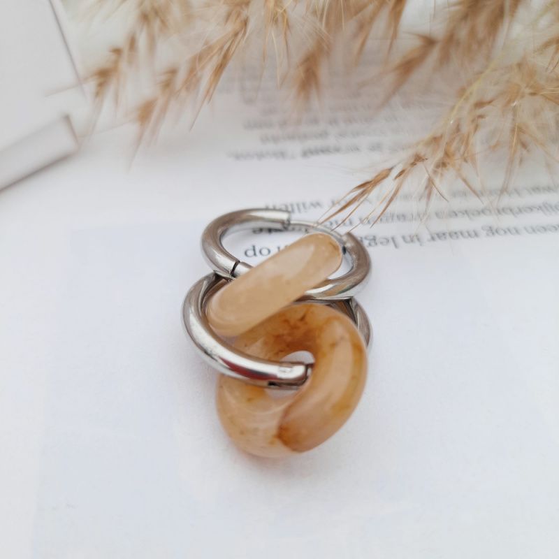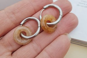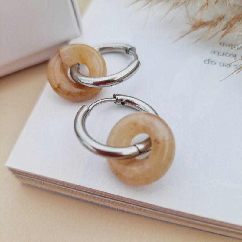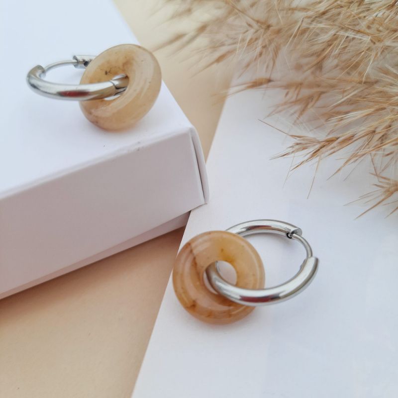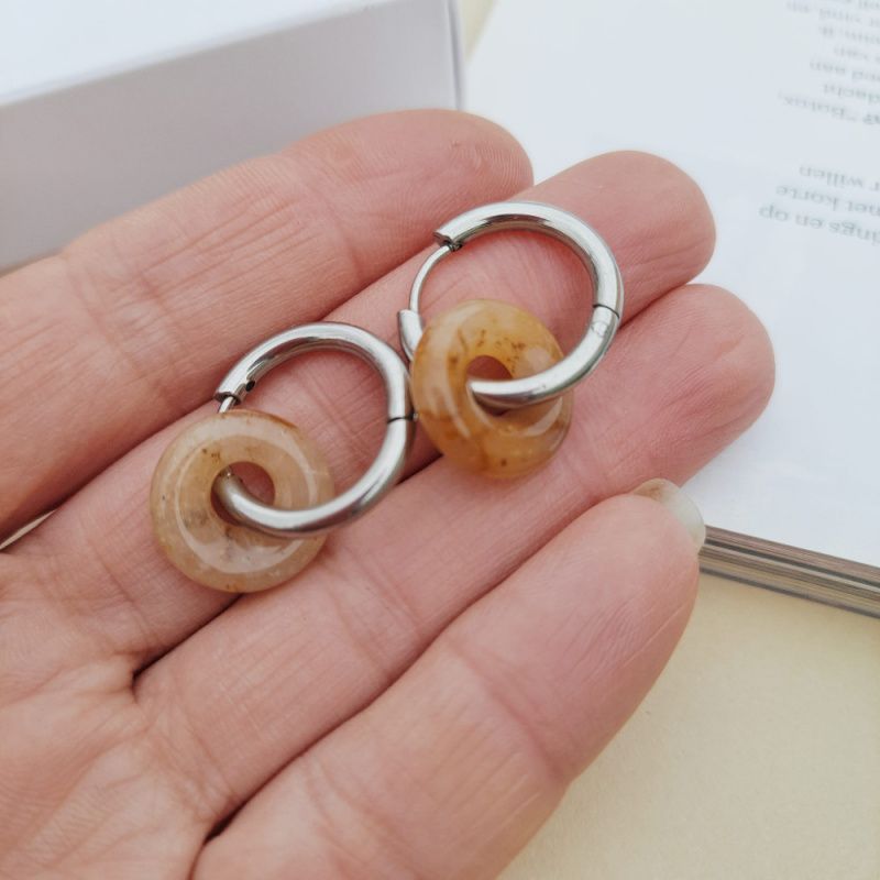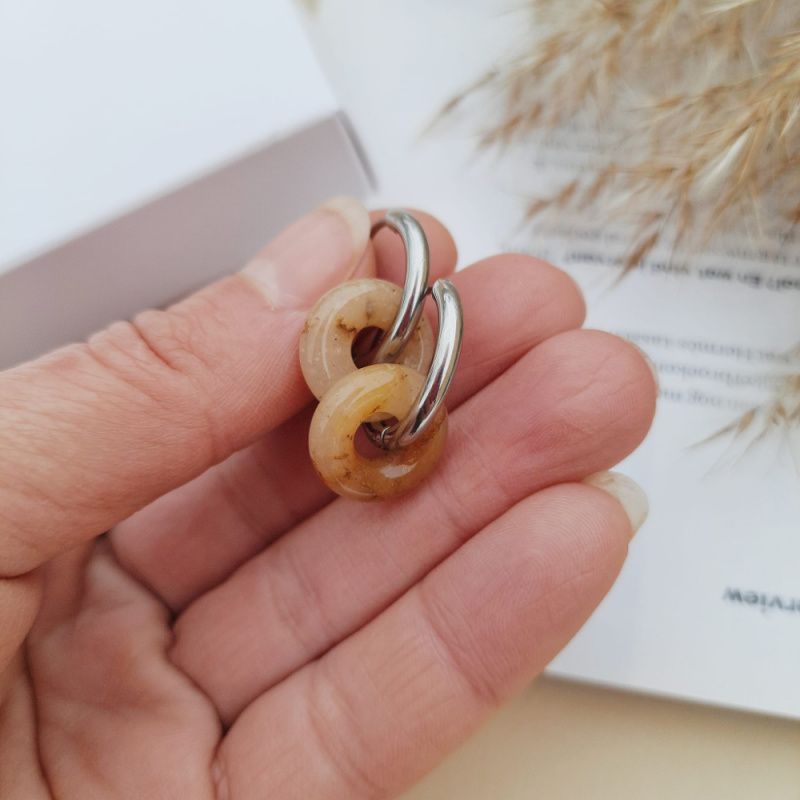 Трендові сережки-кільця з підвісками із жовтого нефриту.