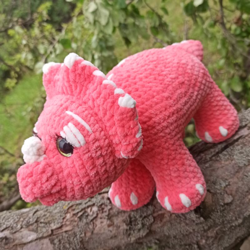 Трицератопс Сера із мультфільму " Земля до початку часів". Виконаний за оригінальною схемою з м'якої плюшевої нитки. Наповнювач холофайбер. Оченята на безпечних для дітей кріплення.