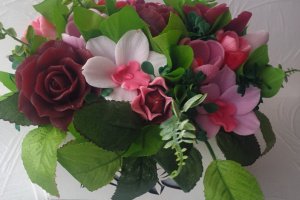 Вишикана композиція з квітів у дерев'яному кашпо стане прикрасою будь-якого інтер'єру.