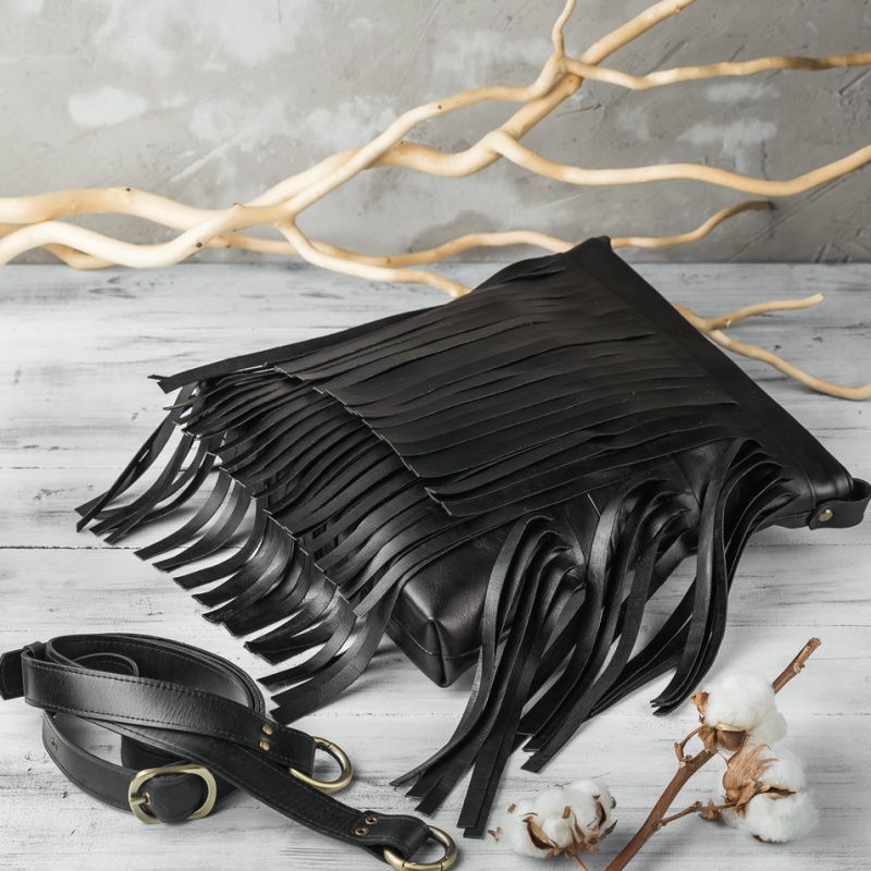 Чорна Шкіряна Сумка Клатч З Бахромою створена, щоб миттєво зробити її власницю вільною і впевненою у будь якій ситуації. У вас буде абсолютно індивідуальний образ, завдяки якому ви отримаєте багато неймовірних компліментів. Перевірено понад 480-ма нашими клієнтками!