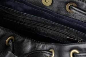 Сумка закривається магнітною кнопкою і затягується шкіряним шнуром. Всередині має міцну текстильну підкладку і дві кишені, один з яких на блискавці для вашого смартфона, ключів, гаманця або інших дрібниць.