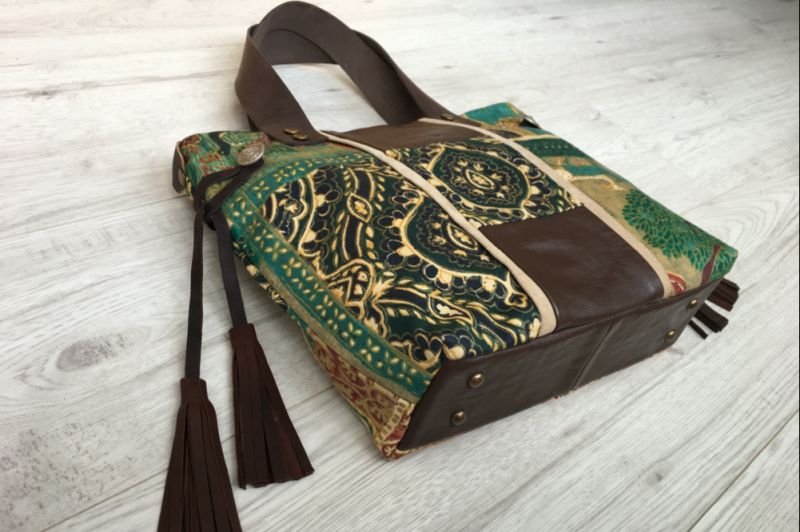 Китиці бахроми, вінтажні гудзики, глибокий колір шкіри, автентичність тканини ... Об'єднання всіх цих "дзвінких" деталей робить цю бохо сумку неповторною.