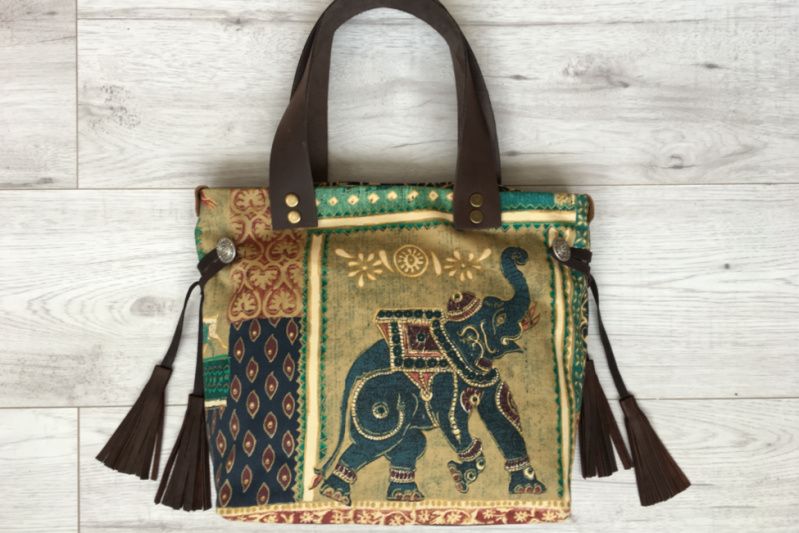 Текстильна Бохо Сумка З Елементами Шкіри "Індійський Слон" дуже містка і зручна. Досить велика, щоб в неї помістився 13-дюймовий MacBook, телефон, гаманець, ключі, документи, пляшка води (500 мл) або інші ваші речі. Ви можете використовувати її в далеких поїздках, на фестивалях і в повсякденному житті.