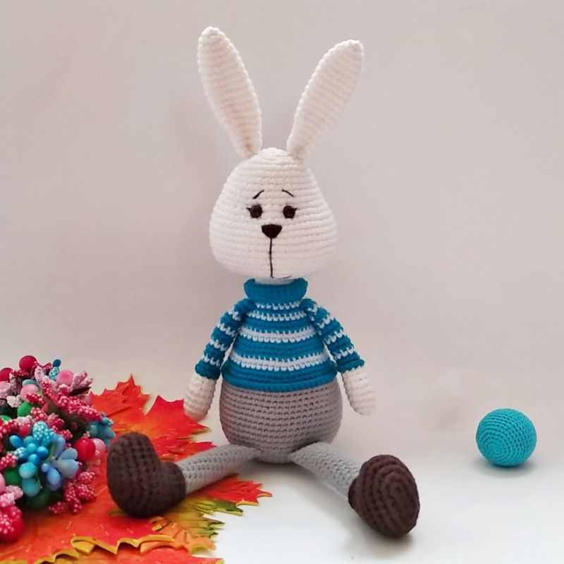 Такий зайка підійде для дітей з народження Пов'язаний гачком з гіпоалергенних матеріалів Очки на безпечному креплени Всі деталі міцно пришиті