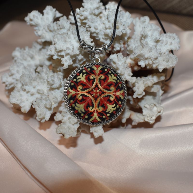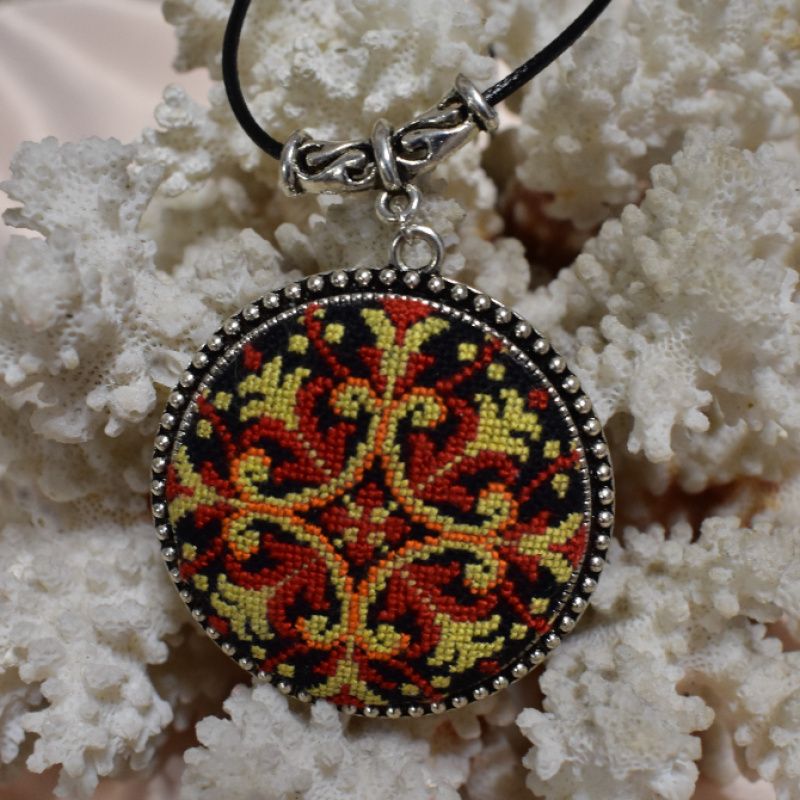 Кулон вишитий по старовинній відновленій схемі 19-го сторіччя, символізує побажання щастя.