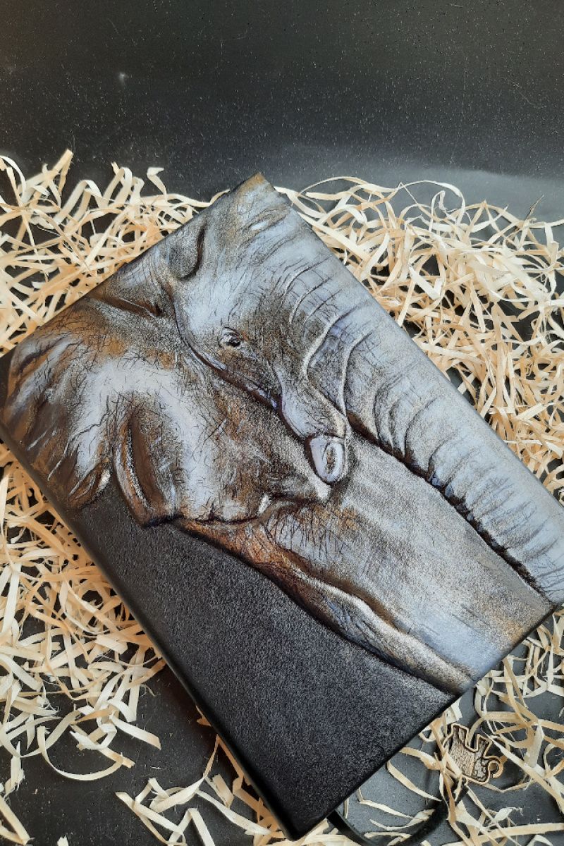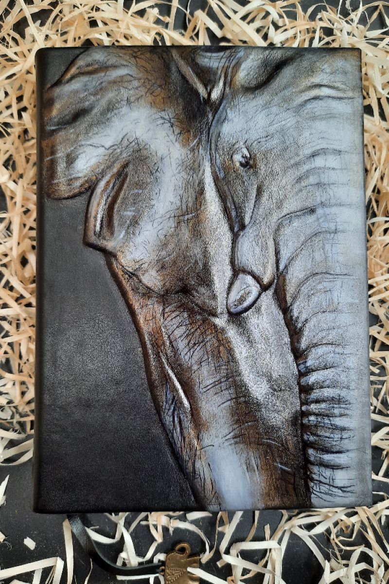 Виготовляю тематичні блокноти на будь-який смак з будь-яким дизайном. Виготовлений даний блокнот був під індивідуальне замовлення. Формат: А5 (14,8 × 21 см) Блок: 130 постарених листів в лінію. (Шаблон роблю під Вас !! Колір листів можна змінювати!). Обкладинка: Натуральна шкіра, об'ємний малюнок слона + бронза і промальовування дрібних деталей. На обкладинці може бути будь-який малюнок, можна змінювати колір шкіри, листи і т.д. А6 (10,5 × 14,8см) - 940 грн. А5 (14,8 × 21 см) - 1600 грн. Для замовлення пишіть на Вайбер / Telegram: 0992161368.