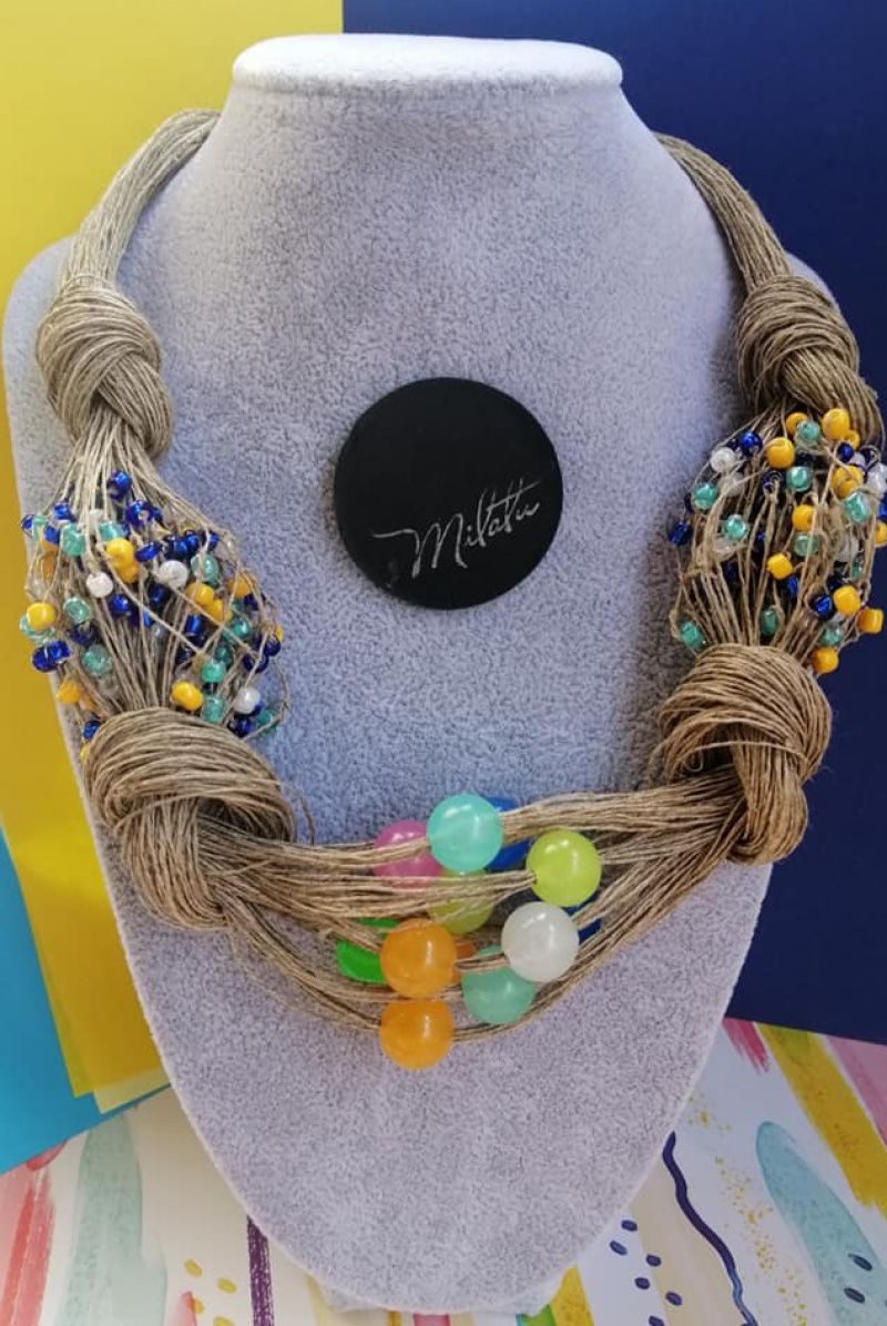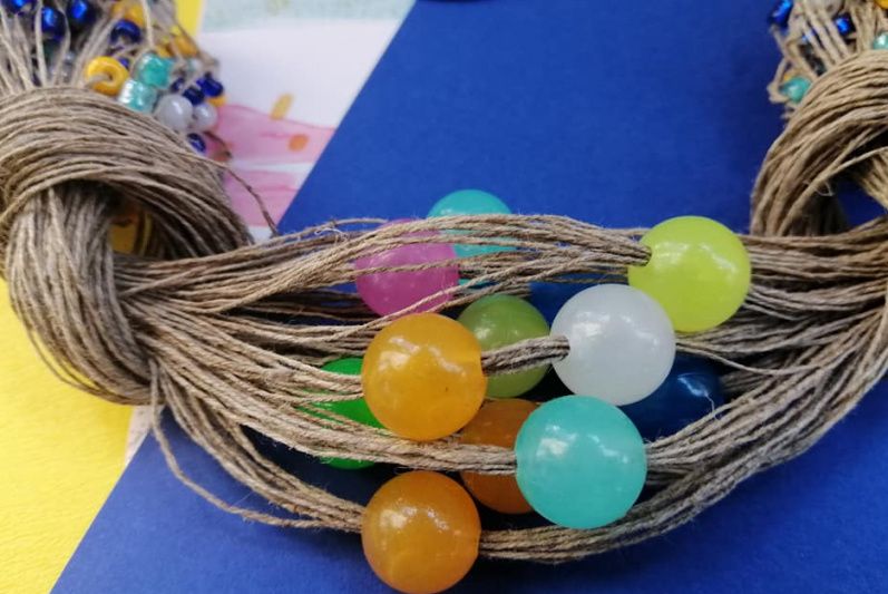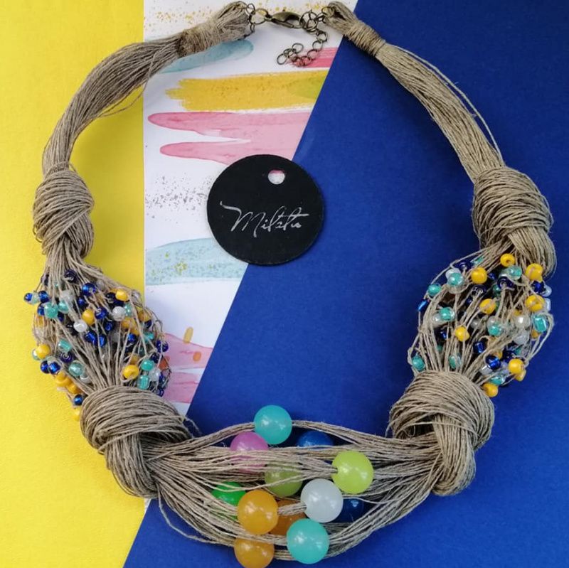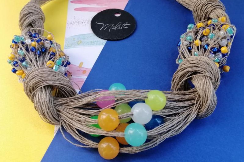Намисто з льону, бісеру і намистин, що світяться в темряві)