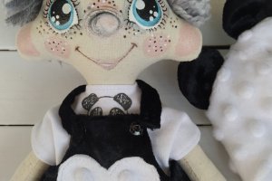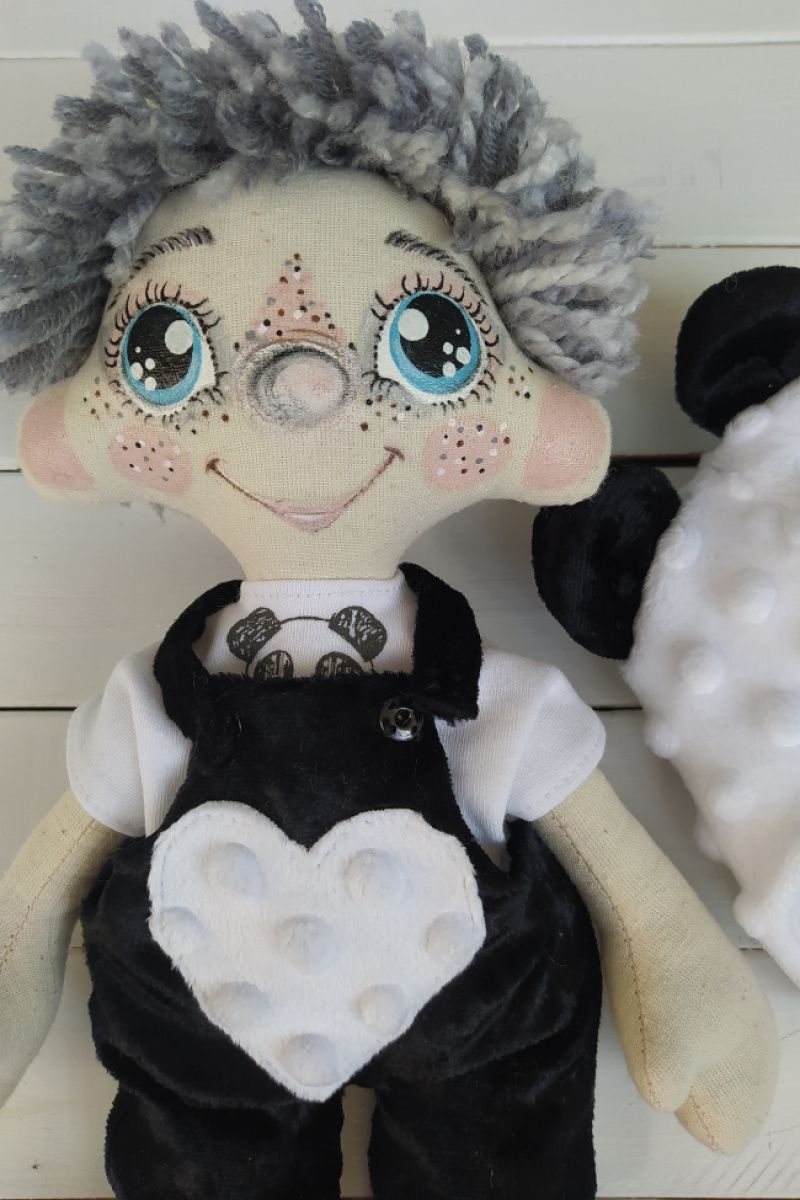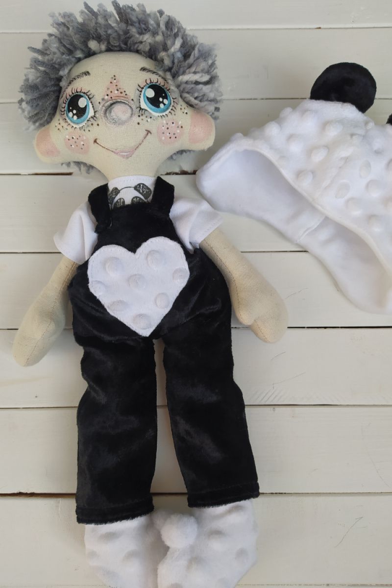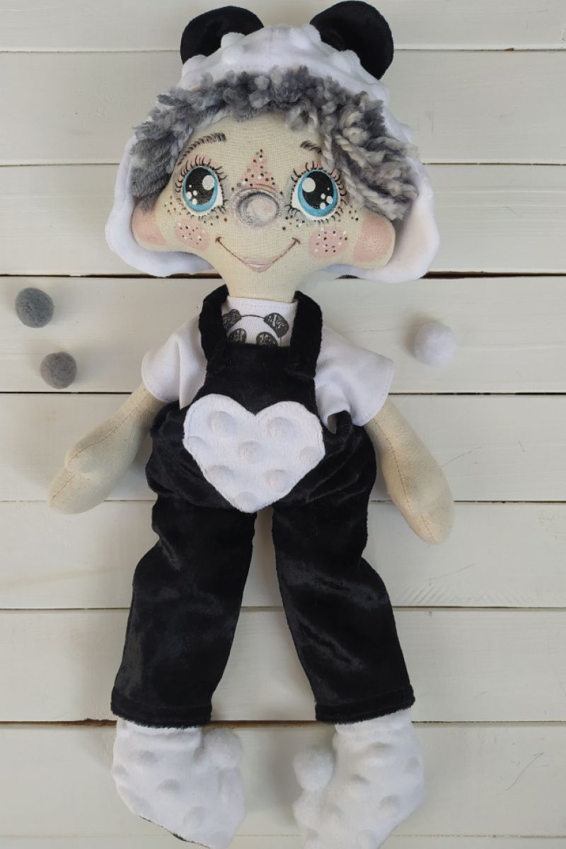 Лялька "панда", ігрова. Розмір 38 см. Одяг та взуття знімається. М'якенька і приємна на дотик.