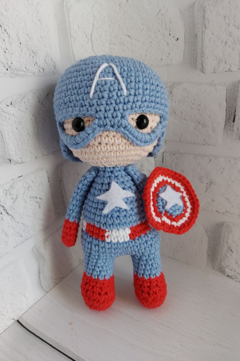 Супер герой Капітан Америка, пов'язаний їх бавовняної пряжі, зростання 15 см.