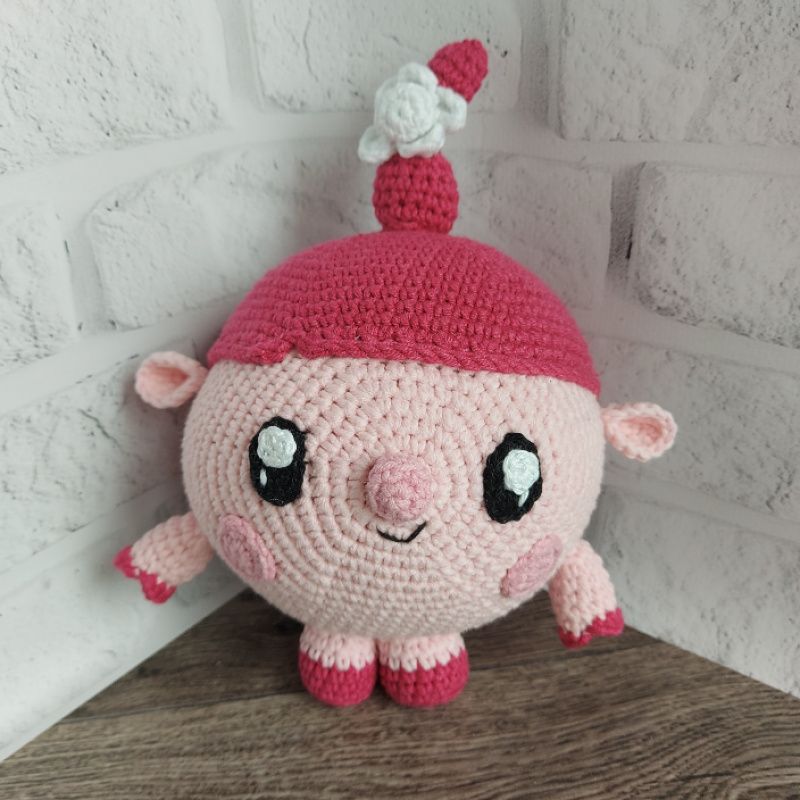 Малишарік Нюша, героїня відомого всім мультика, пов'язана гачком з бавовни.
