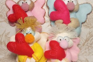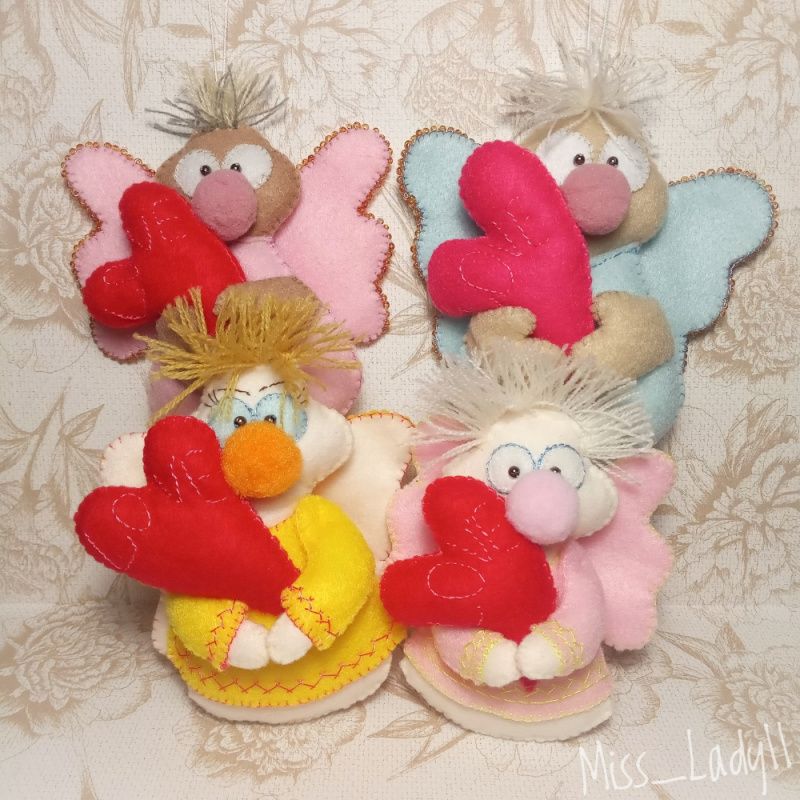 Чарівні амурчики – чудовий подарунок, сувенір на день Св. Валентина. Матеріал – фетр. Наповнювач – синтепух. Розміри - 11 см х 11 см, 10 см х 10 см та 9 см х 8 см. Ціна за 1 шт.