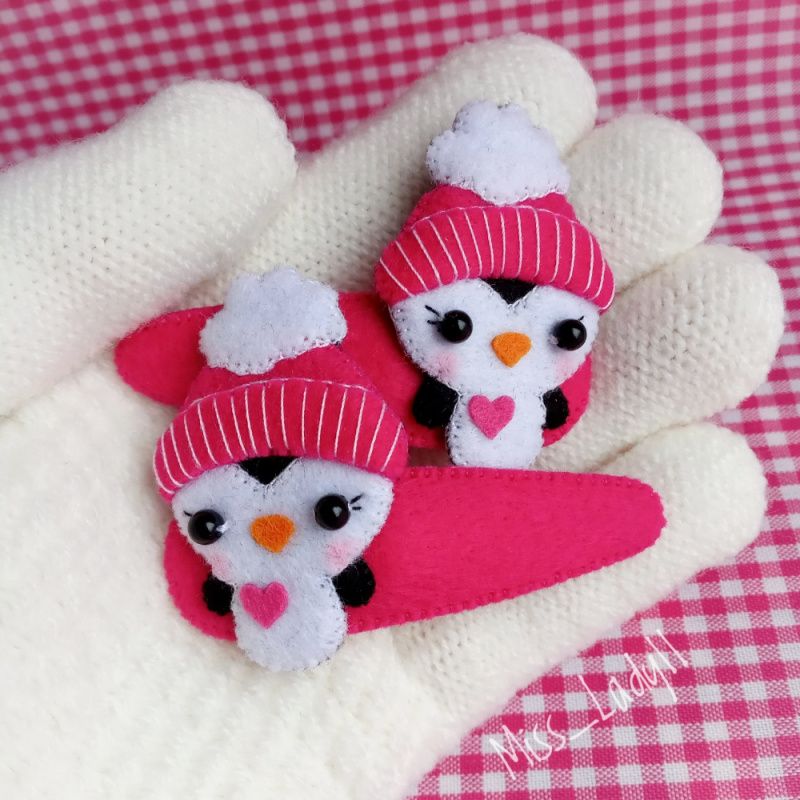 Ручна робота. Матеріал – корейський фетр. Основа - шпилька клік-клак. Розміри: Пінгвінчик - 4,5 см, довжина шпильки - 6 см.
