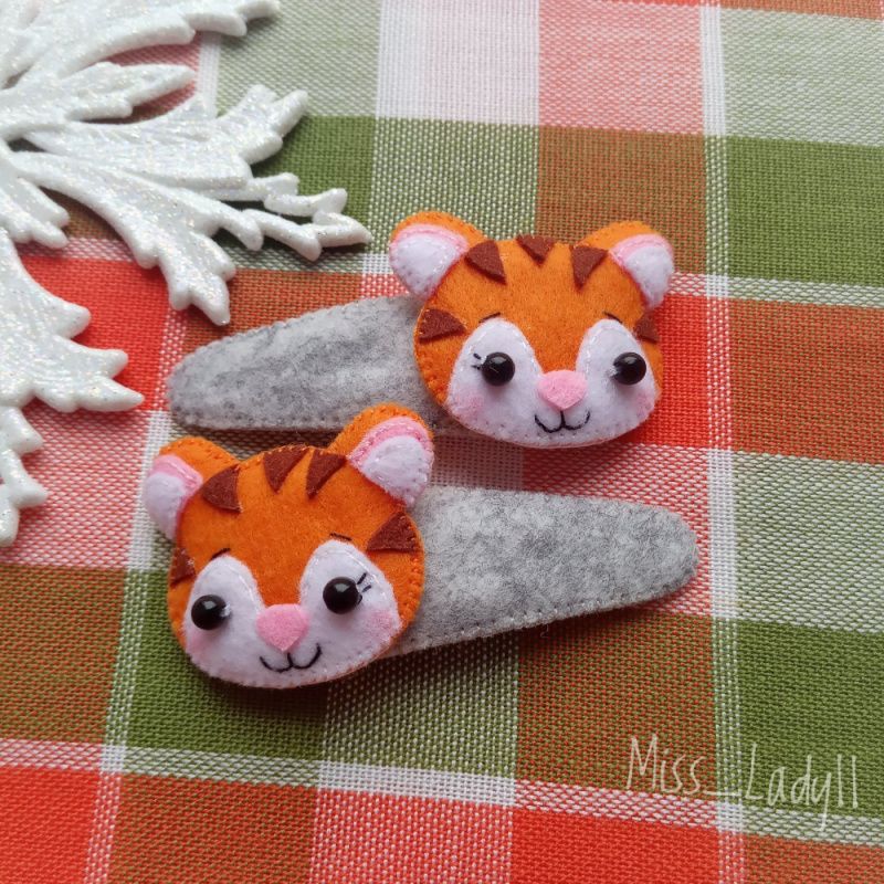 Ручна робота. Матеріал – корейський фетр. Основа - шпилька клік-клак. Розміри: Тигрик - 3 см, довжина шпильки - 6 см.