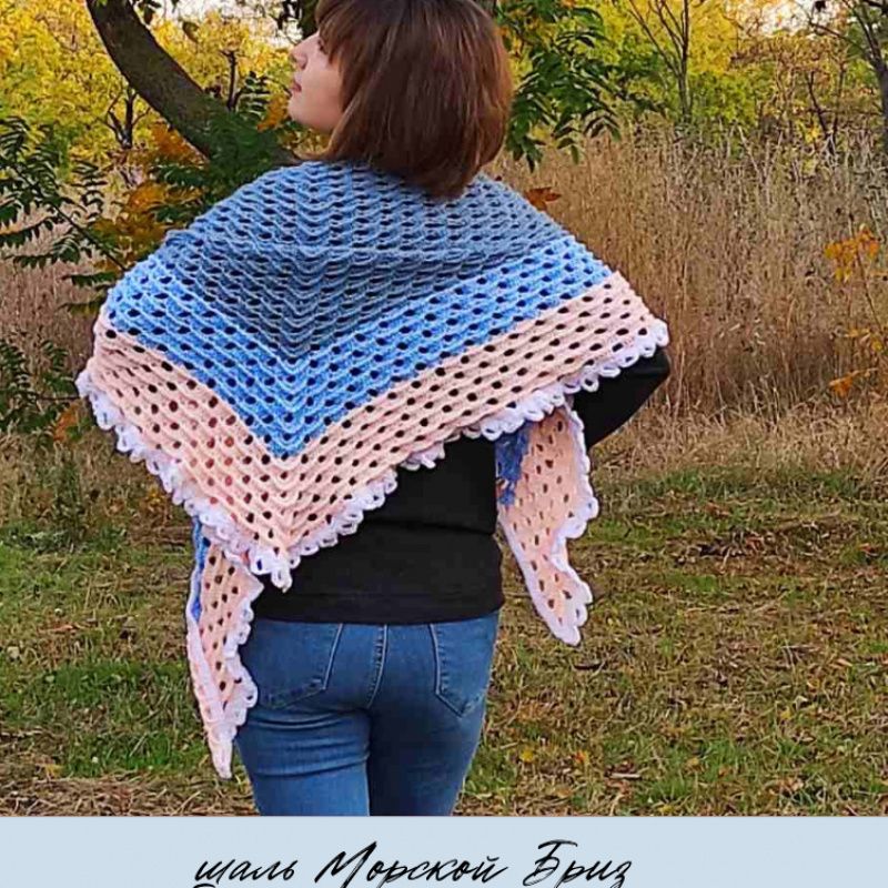 Шаль: морський бриз пов'язана візерунком Морський бриз, ажурна облямівка, соковиті кольори. підкреслить індивідуальність і зігріє в прохолодні # вечера❤️ розміри ширина 180 см, довжина (по центру) 85 см.