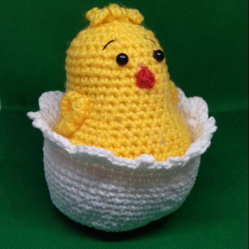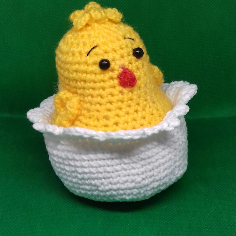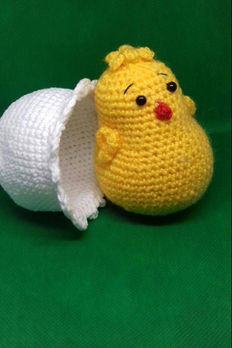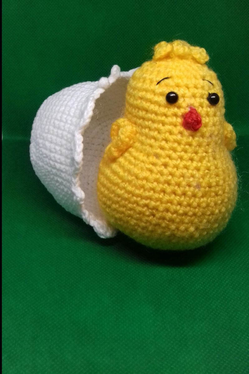 Цыпленок пасхальный. Вязанный крючком, ручная работа, вынимается из скарлупки. Наполнитель и нитки - гипоалергенные. Милый и чудесный Пасхальный сувенир, игрушка, презент. Выс. 10 см.