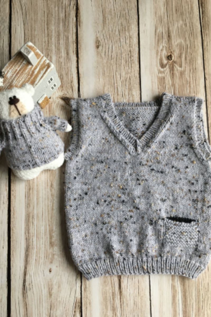 ДитЯчий Твідовий жилет з кишенькою. Практична річ: дає тепло, не сковуючи рухи. Для хлопчиків кишенька буде з правого боку.