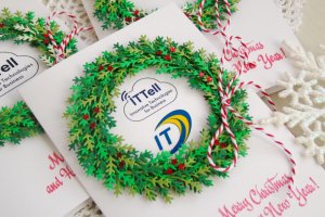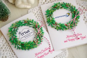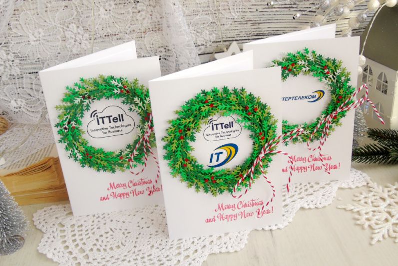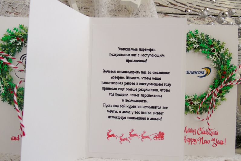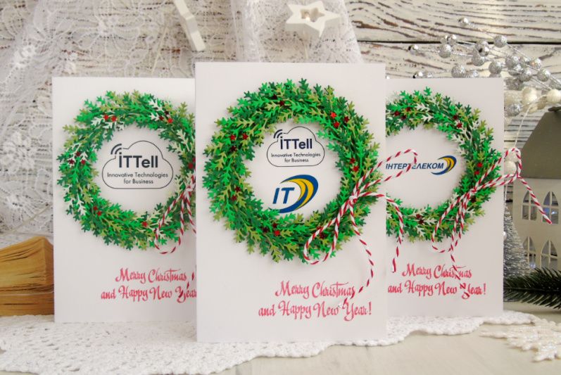 Мін.замовлення від 4-шт, якщо менший розрахунок індивідуальний Листівка з лого та вітанням всередині Основа з білого щільного картону 300 гр.