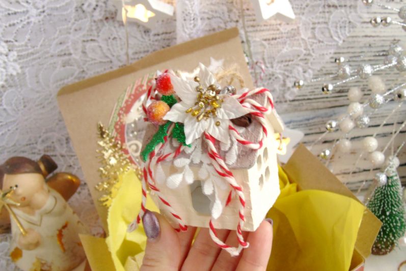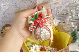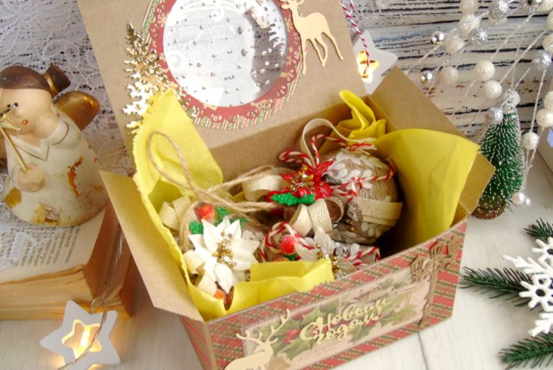 У набір входить: - подарункова коробка - 2 кулі діаметром 6 см - 1 будиночок тобто 3 ялинкові іграшки в подарунковій коробочці.