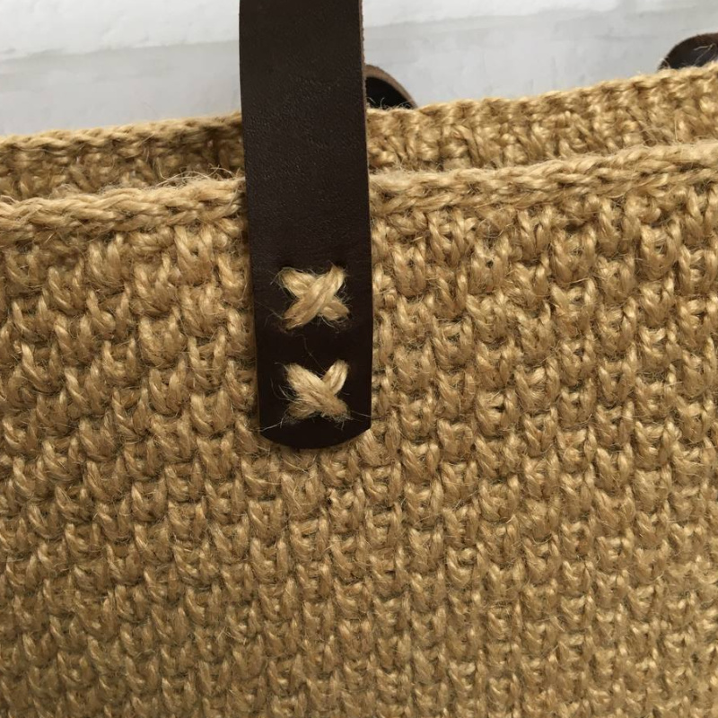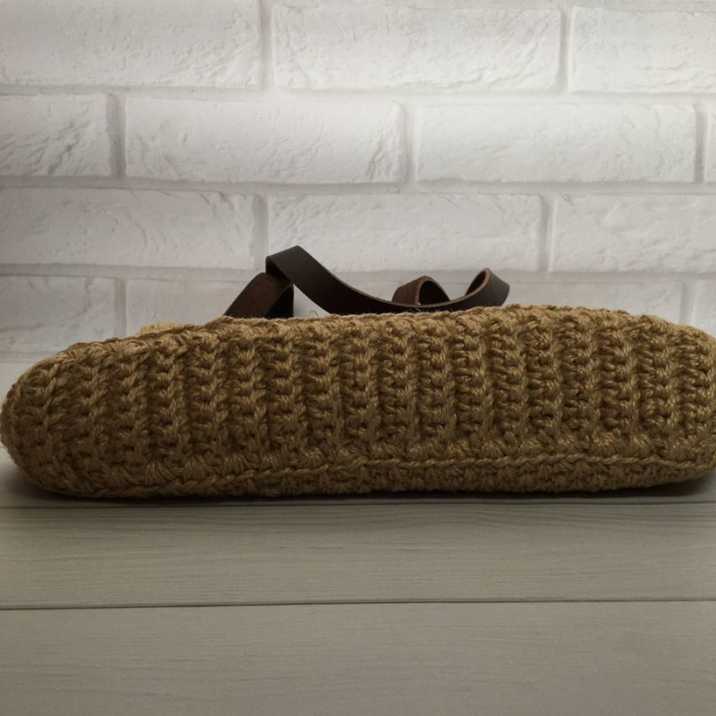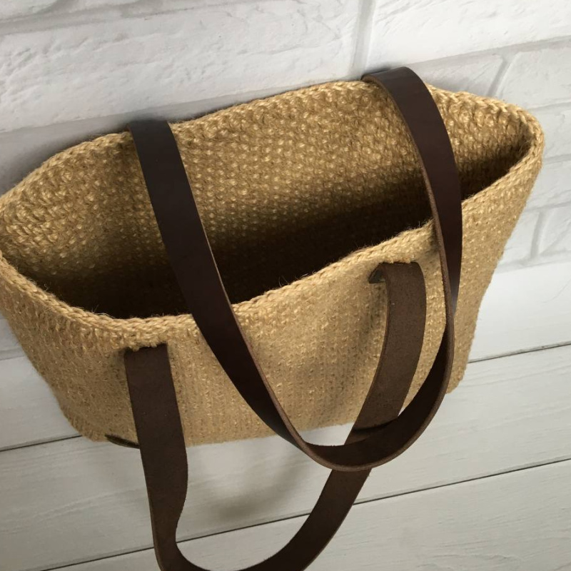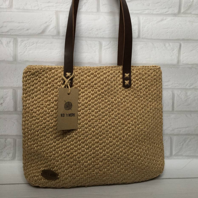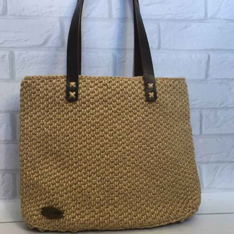 Сумка на пляж із джутового шпагату, зв'язана гачком.
