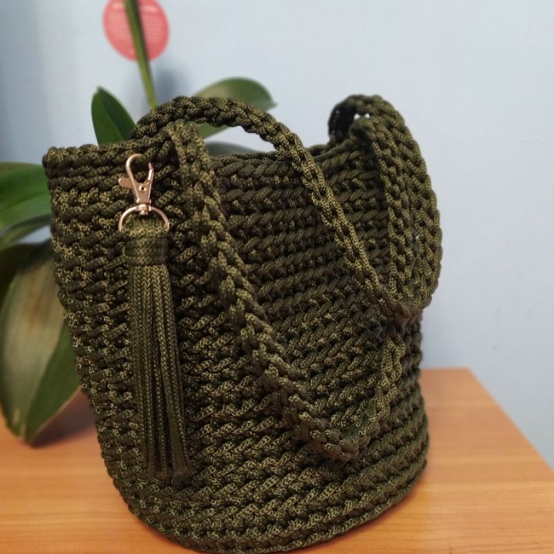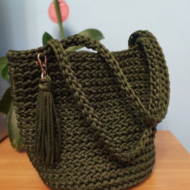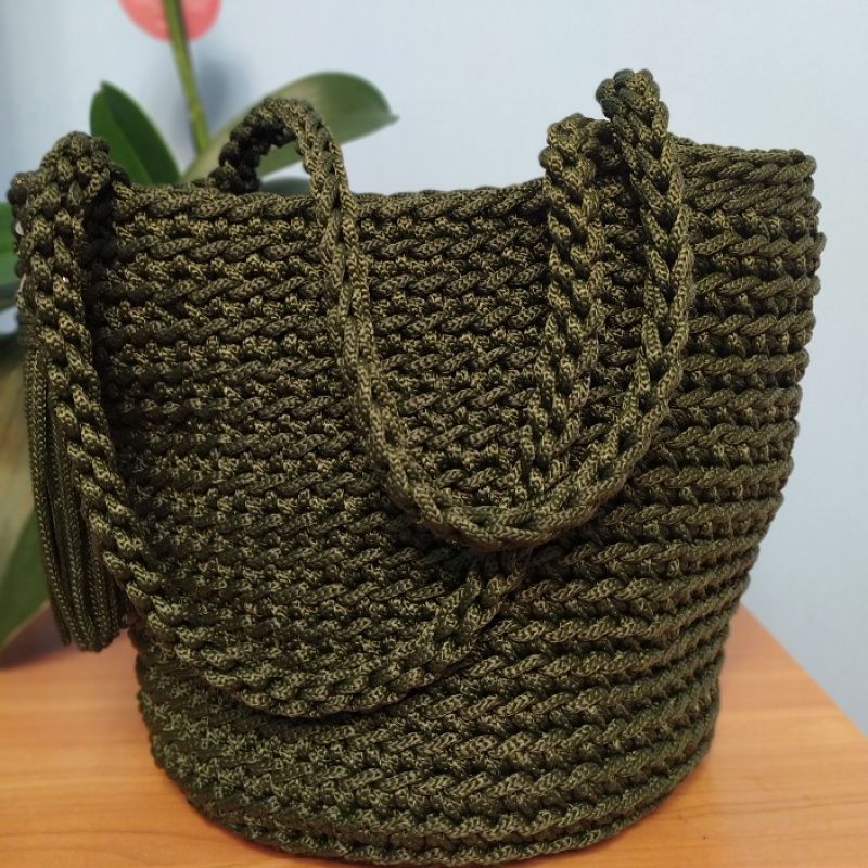 Сумка для повсякденного використання із поліпропіленового шнура, в'язана гачком. Матеріал не вигоряє на сонці, не линяє під час прання. Дрібні плями добре видаляються вологою серветкою. При сильному забрудненні бажано прати вручну при температурі не вище 30 градусів. (!) Усі свої вироби перед відправкою я обробляю парою.