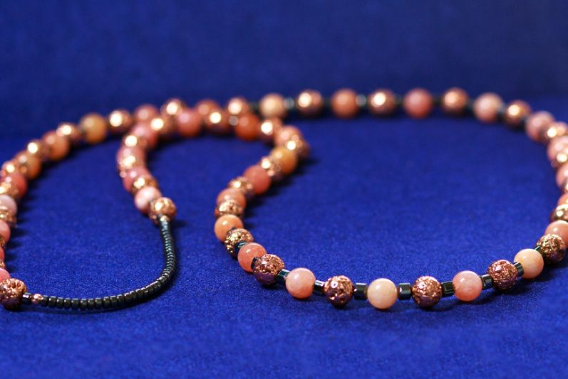 Намисто виготовлене з кварцу 7,5мм , тонованої вулканічної лави 8мм, гематиту 2х3мм і 3,6мм, має фурнітуру зі срібла в позолоті, без застібки. Лавовий камінь вважається унікальним , оскільки містить в собі весь спектр мікроелементів необхідних для життя. Він довго зберігає тепло і при контакті з тілом віддає свої корисні властивості - укріплює імунну систему і знімає стрес. В свою чергу гематит позитивно впливає на хімічний склад крові, лікує анемію , дає можливість організму бути в тонусі. Окрім цілющих властивостей, яскраві сонячні тони представленого намиста подарують вам літній настрій в будь-яку пору року.