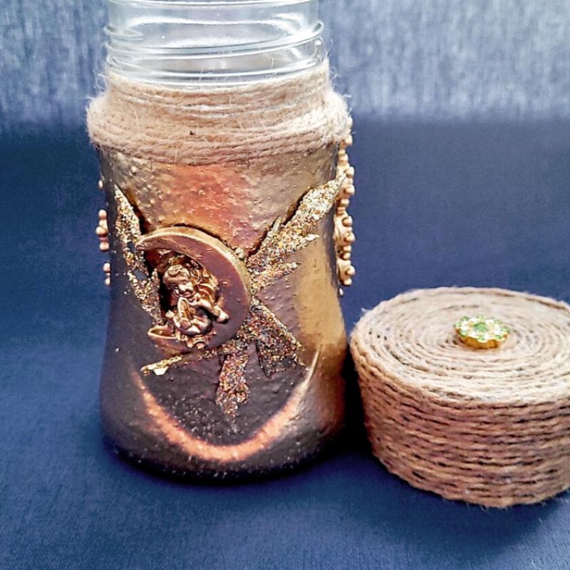 Баночка-шопка з багатим золотим декором для освячення та зберігання води, ручноі роботи