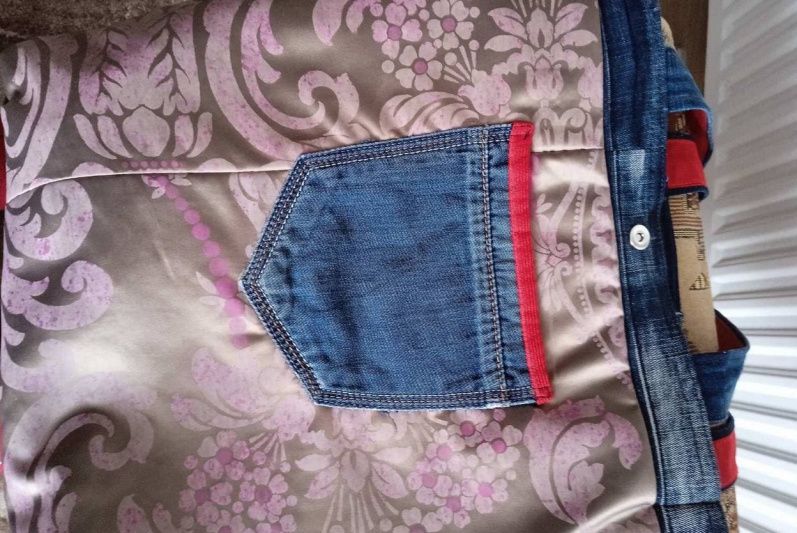 Сумка з джинсових тканин, щільна, засмучена, одна кишеня зверху, одна на підкладці, підкладка щільний шовк, застібка магнітна кнопка. Розміри висота 43, ширина 40, денце 12, ручки 48. Усі сумки в єдиному екземплярі, повторів немає.
