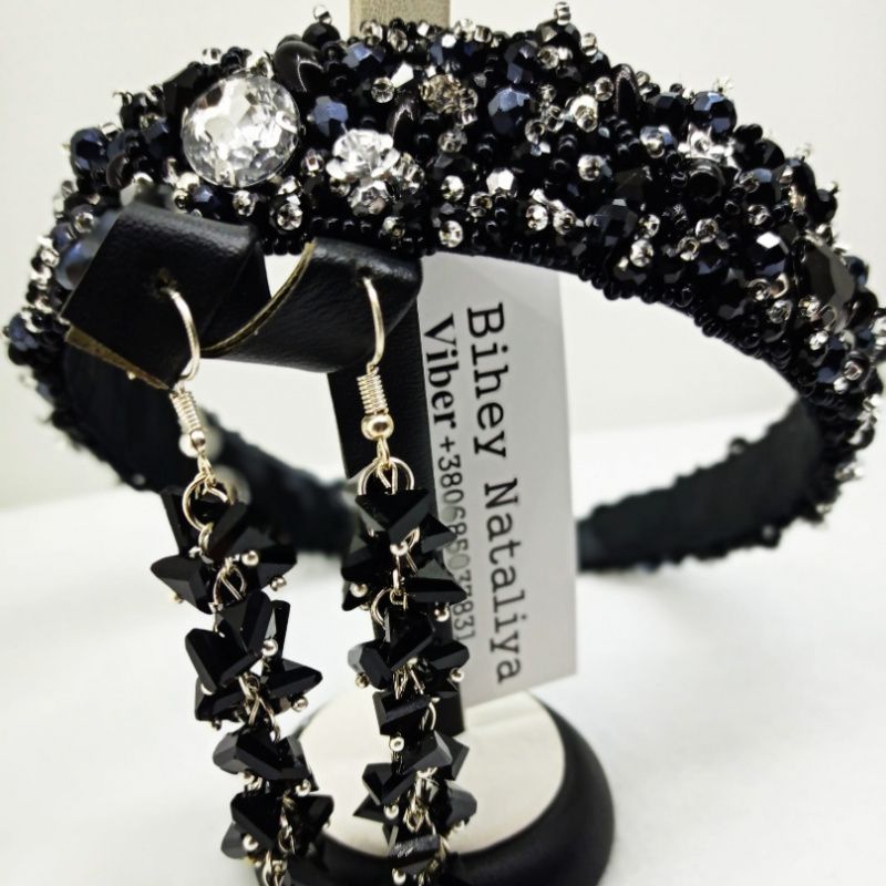 Ціна сережок: 350 грн.(пірамідки "Swarowsky") Обвідок: 650 грн. Можливе виконання в інших кольорах.