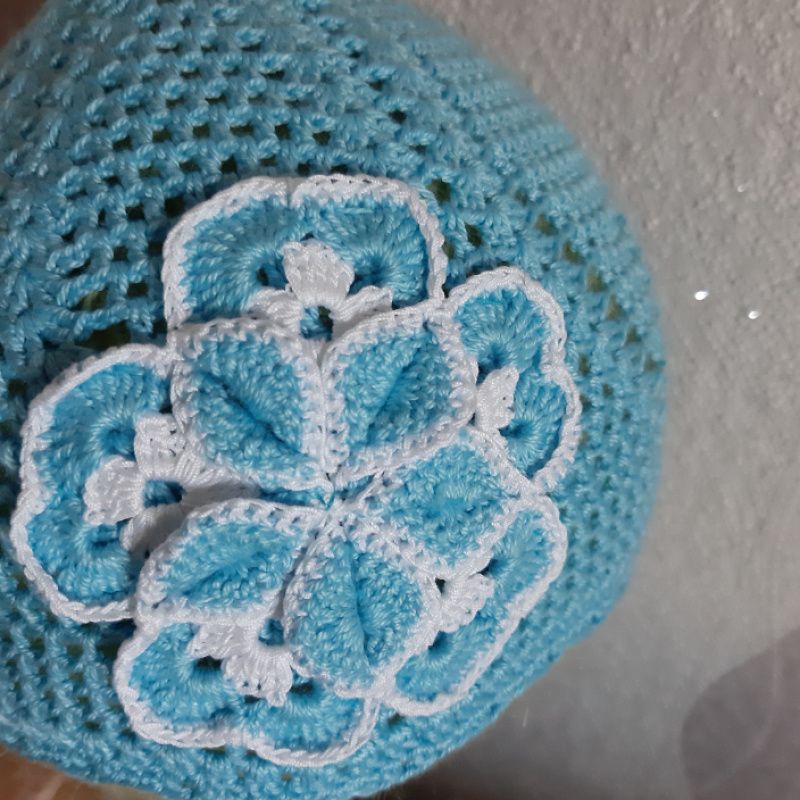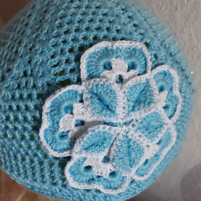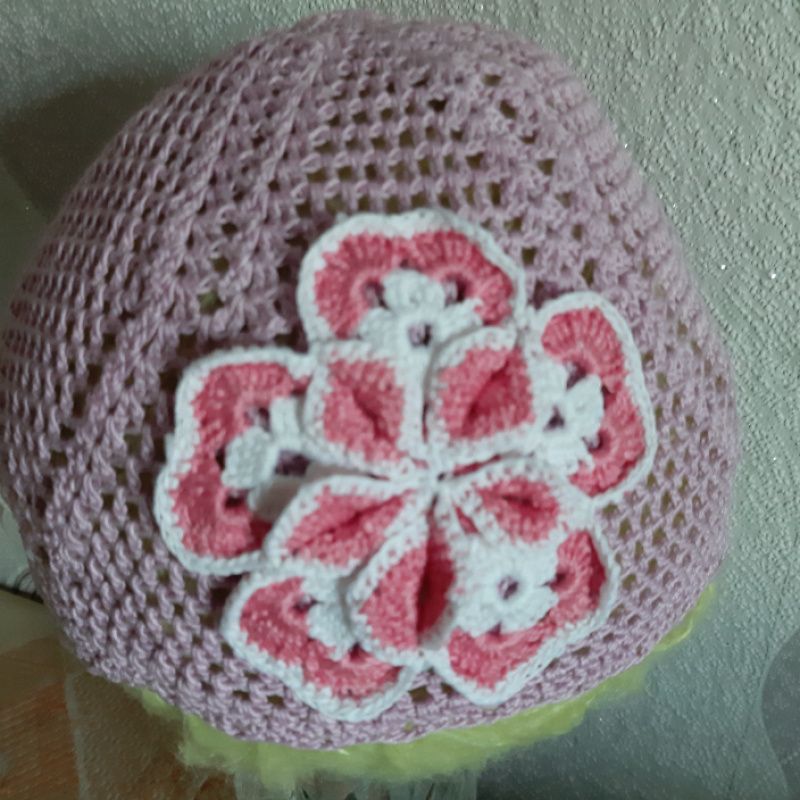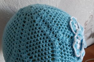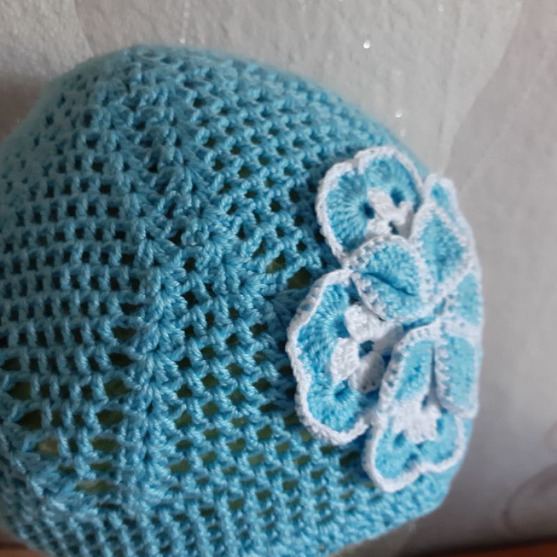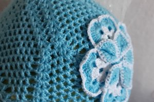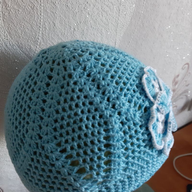 Блакитна шапочка пов'язана з бавовни з бамбуком, рожева з бавовни Віолетт. На обсяг голови 50-52. Висота шапочок 16 см.