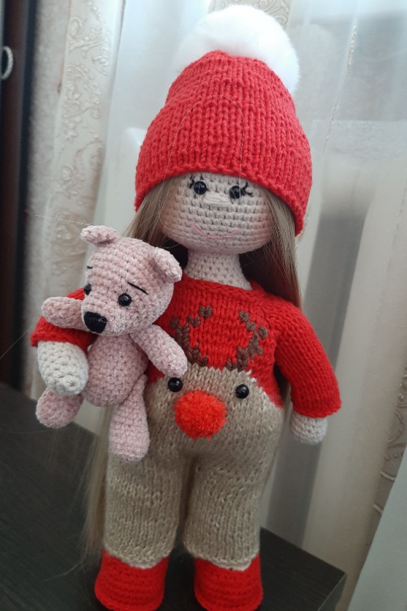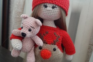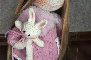 В руках каркас завдяки якому лялька тримає маленьку іграшку