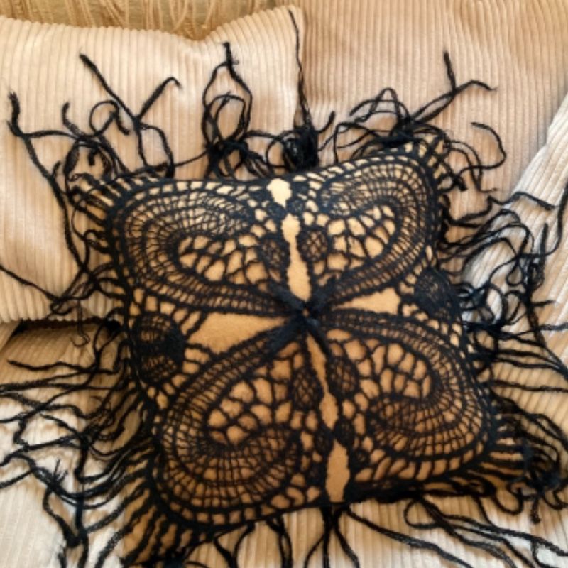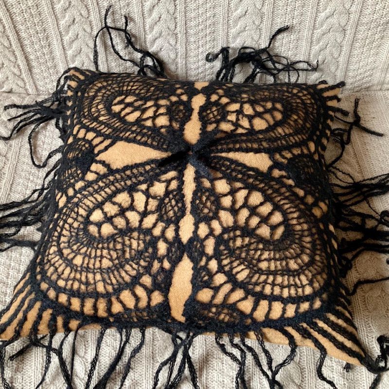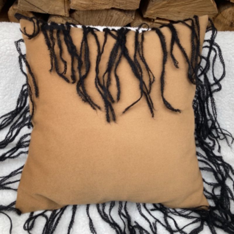 Ручна робота. Кашемірова декоративна подушка кольору Camel з мохеровим мереживом і бахромою. Тактильно дуже м'яка і приємна, що не колючий. На блискавці. Внутрішня подушка наповнена гіпоалергенним холлофайбером ..