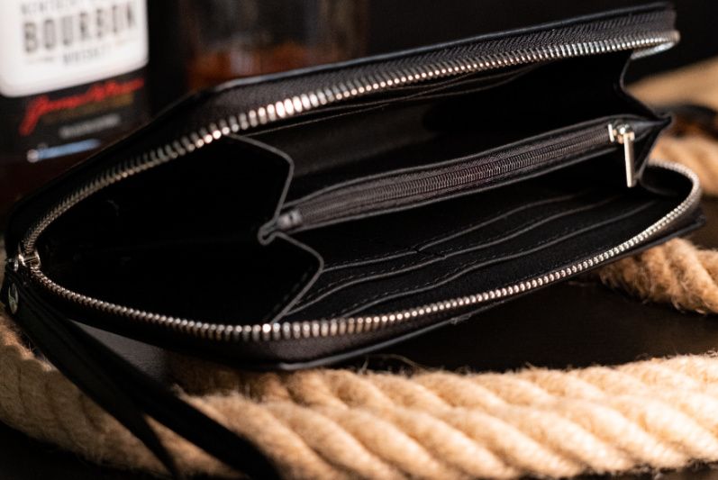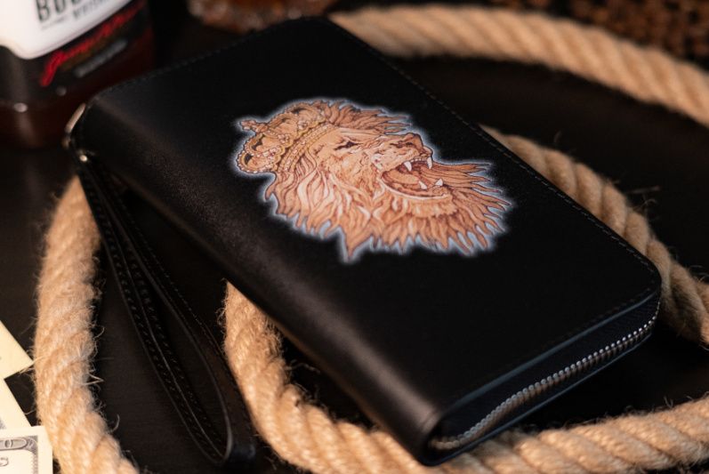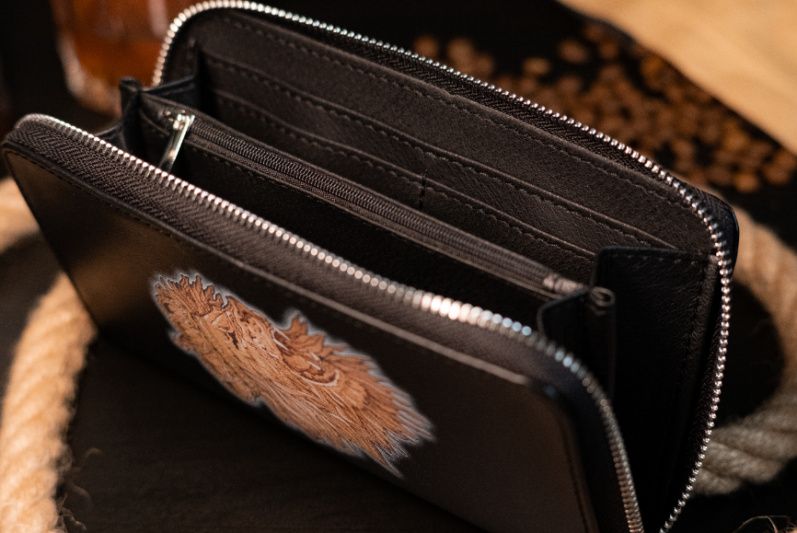 Шкіряний гаманець на блискавці. Розмір виробу 20*10 см. На гаманці закріплений зручний шкіряний ремінець для носіння на зап'ясті. Усередині 12 відділень для карток, монетниця на блискавці, 3 відділення для купюр. Малюнок нанесений за технологією ультрафіолетового друку. Це інноваційна технологія, що малюнок тримається на шкірі дуже довго, зберігає яскравий колір. Гаманець упакований у подарункову фірмову упаковку.