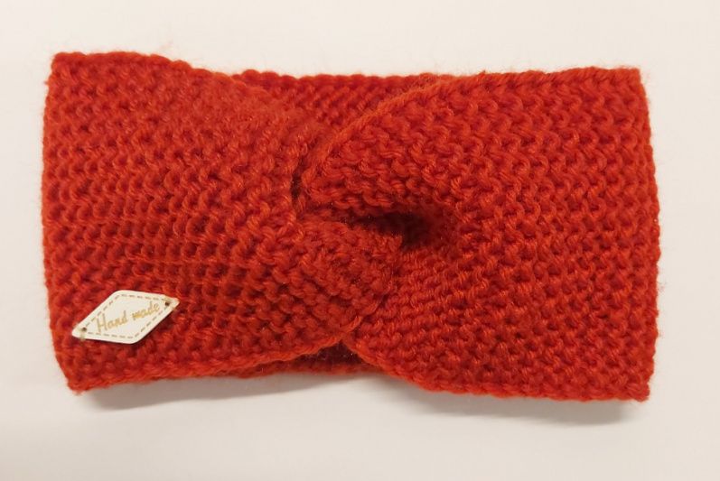Пов'язка на волосся в'язана спицями. Колір червоний.