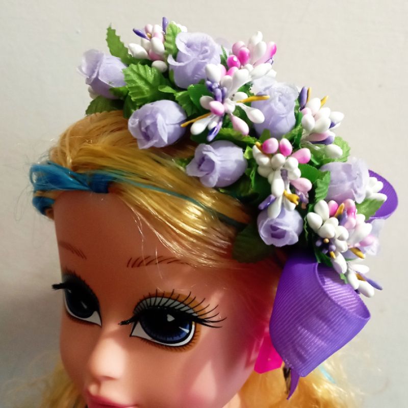 Обідок з маленькими бутонами троянд у бузковому кольорі на тонкому металевому обідку
