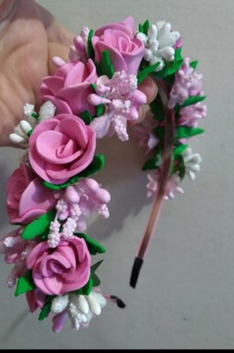 Рожеві трояндочками з фоамірану ручної роботи, на тонкому металевому обідку.