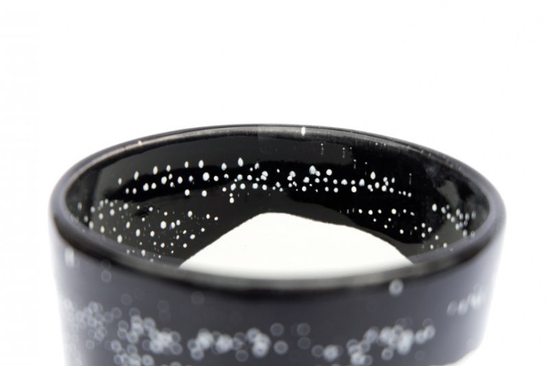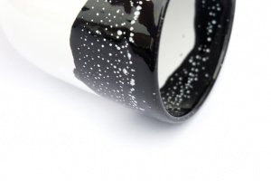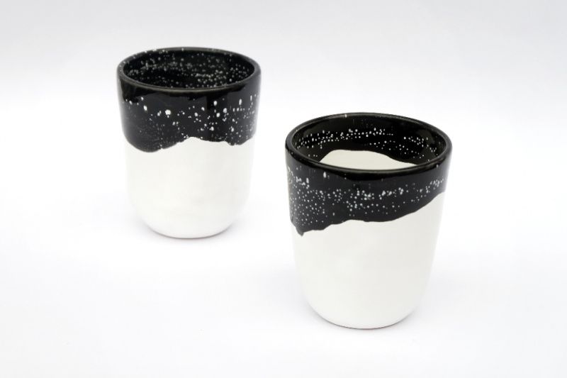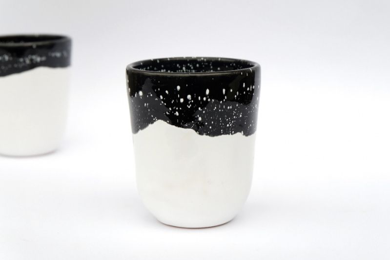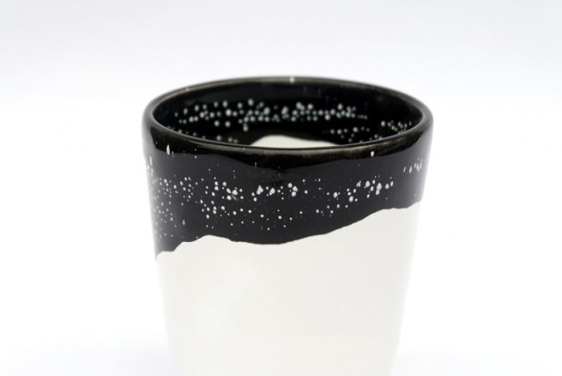 Стакан створений з гончарної глини та покритий глянцевою білою поливою, яка поєднується з насиченою чорною шапочкою зверху. Виготовлений на гончарному колі, всі деталі зроблені вручну.