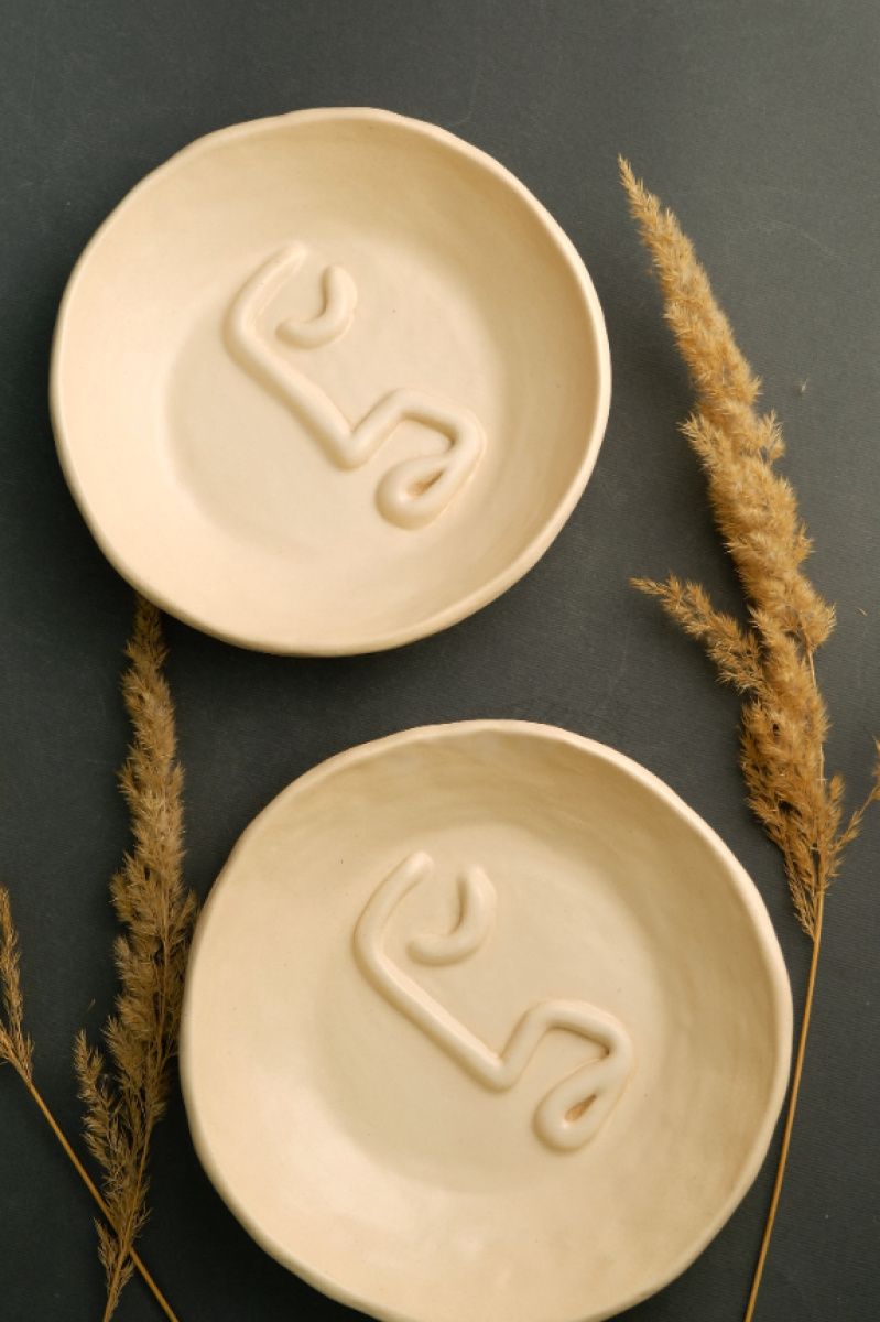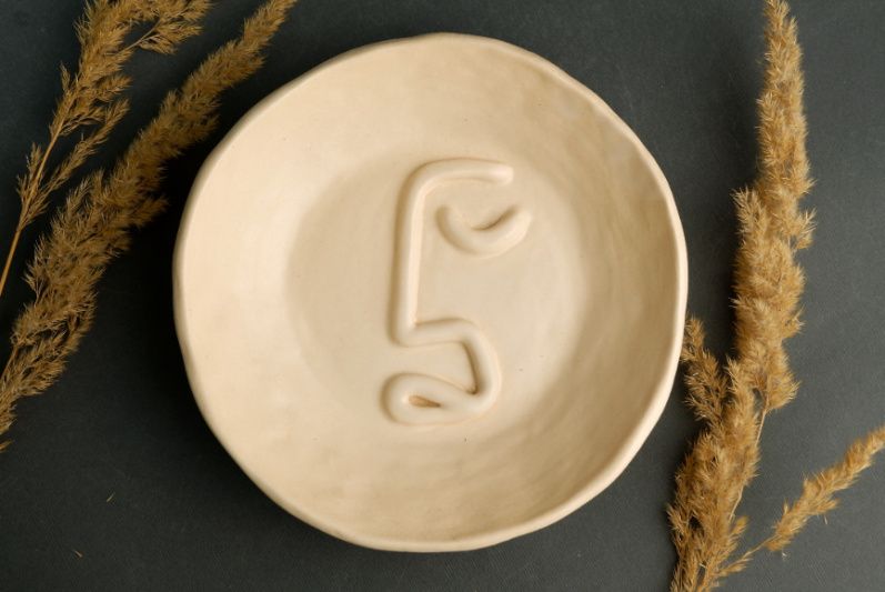 Керамічна тарілочка для прикрас та інших дрібничок. Зліплена вручну з білої глини та покрита матовою поливою.
