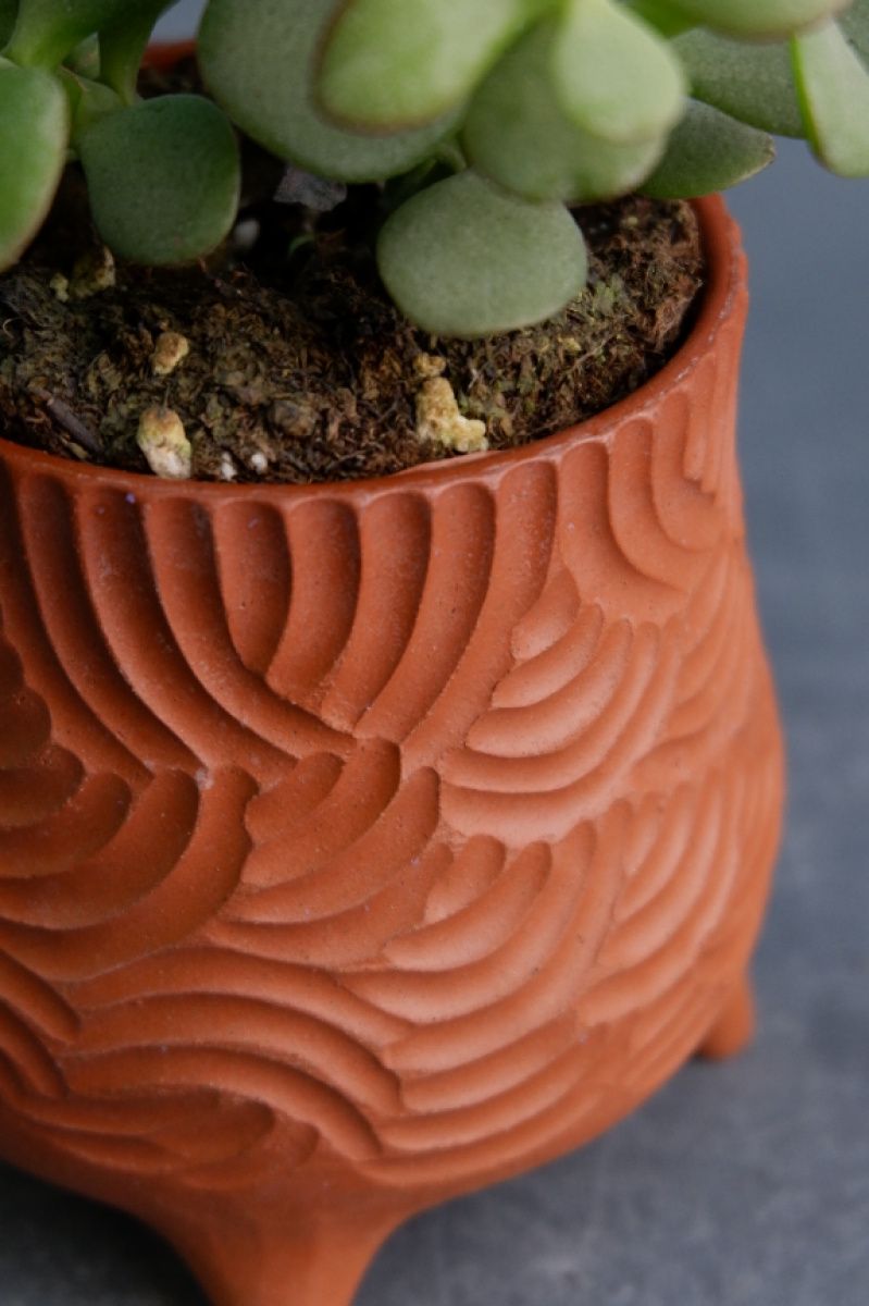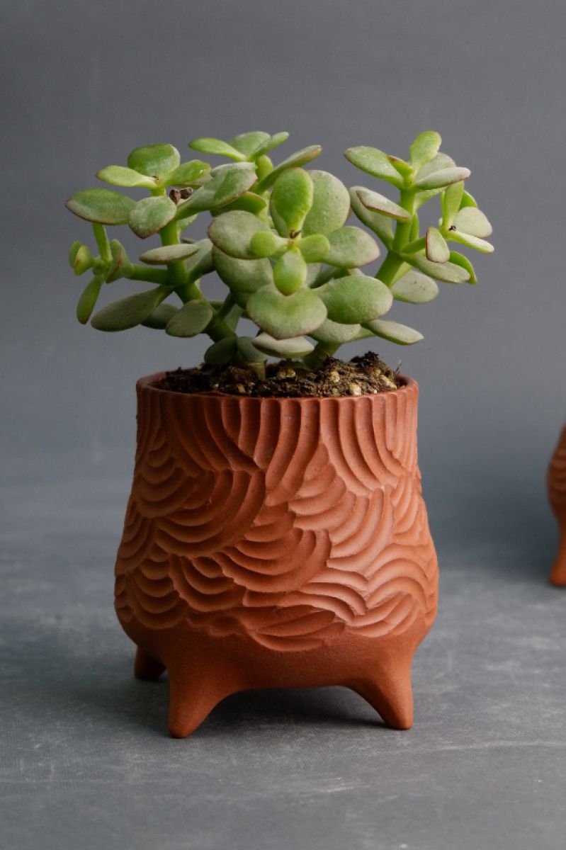 Керамічні горщики для ваших улюблених рослинок, наприклад кактусів, сукулентів, фіалок чи інших. Горщики на чотирьох стійких ніжках, виконані в червоному матовому кольорі.