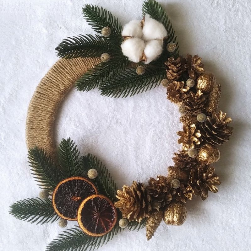 Новорічний вінок ручної роботи. Виготовлений якісно та акуратно. Гарна прикраса для створення новорічного настрою. Діаметр 27 см