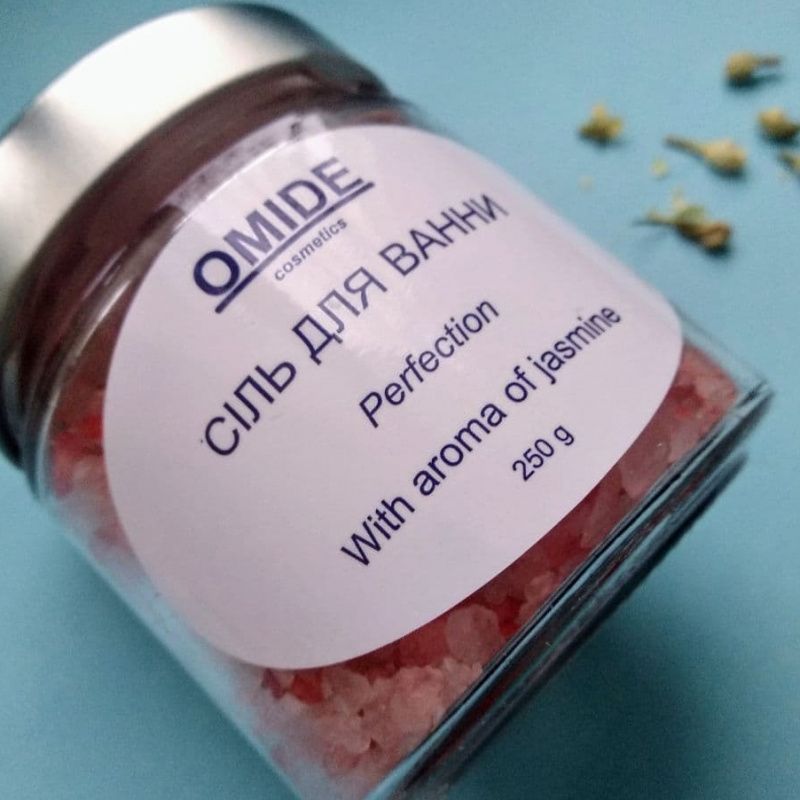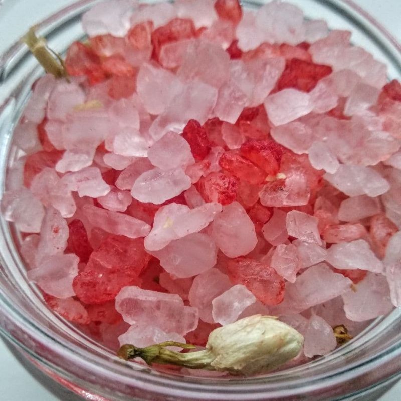 Склад: Sea crystalline salt, Hamalayan pink salt, Grape seed oil, Polysorbate, Composition of essential oils, Jasmine flower buds, Pink food coloring.