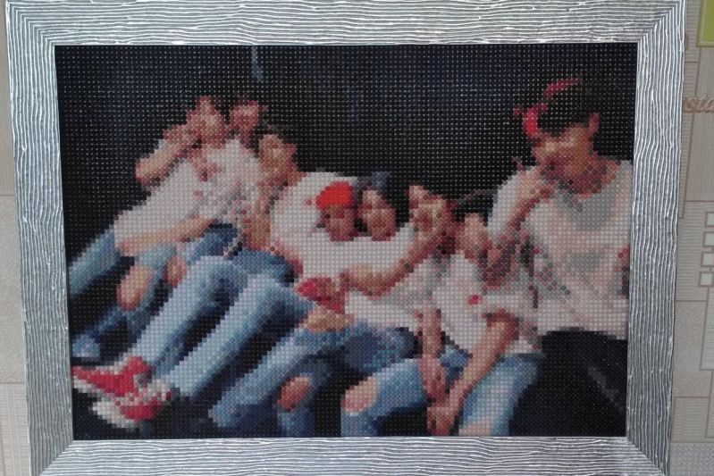 Малюнок покритий лаком, тому не вимагає скла, дозволяючи алмазам грати у світлі.