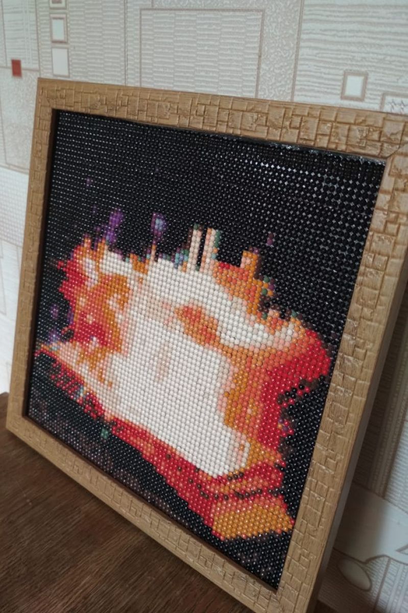 Властивість алмазних картин така, що вони блищать при світлі і чим частіше дивишся на картину, тим глибшим стає малюнок.