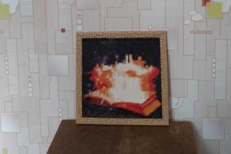 Дуже незвична картина. Її відразу не розглянеш і не зрозумієш, але чим довше дивишся – бачиш місто, що випливає, зі сторінок розкритої книги, немов свічки, що горять у темряві. Картина змушує замислитися і передає ауру містики та таємниці. Чудово доповнить кабінет або іншу кімнату вашого будинку.