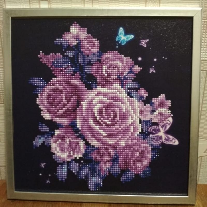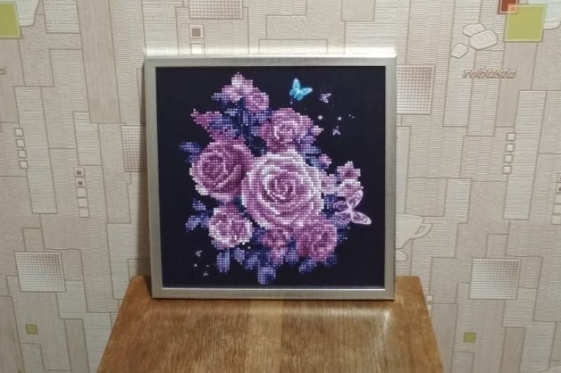 Малюнок покритий лаком, тому не вимагає скла, дозволяючи алмазам грати у світлі.